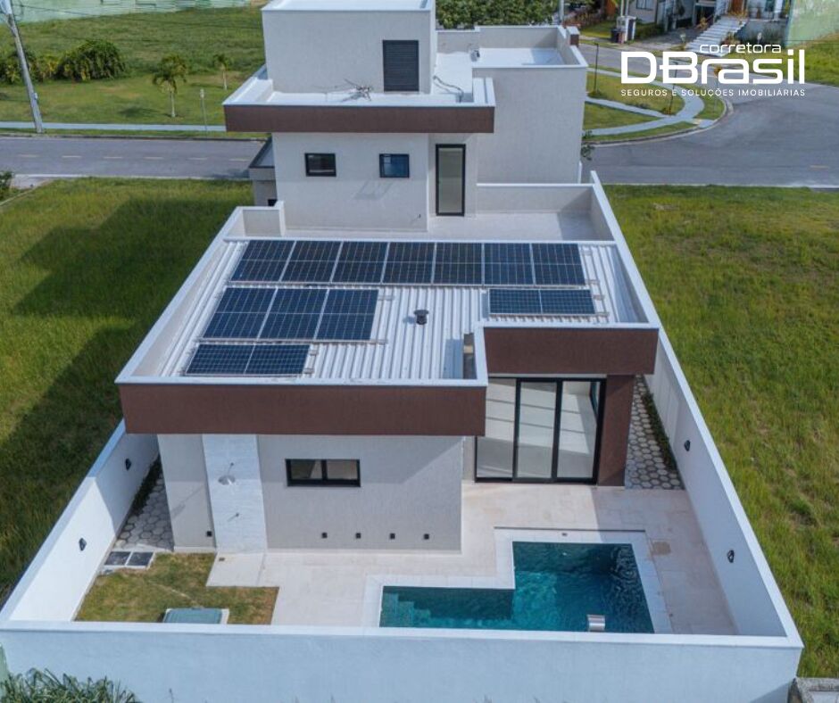 Essa casa à venda no Alphaville, Maricá-RJ conta com 3 dormitórios, sendo 2 suítes com closet, banheiros sociais, lavabo, sala ampla com pé direito alto e dois ambientes, cozinha com ilha, área gourmet integrada, casa inteligente com cômodos integrados, energia fotovoltaica com 12 placas solares, piscina em alvenaria, cascata, cisterna com 12 mil litros e vaga para até 4carros perfeito para você e sua família terem todo o conforto necessário e momentos incríveis.